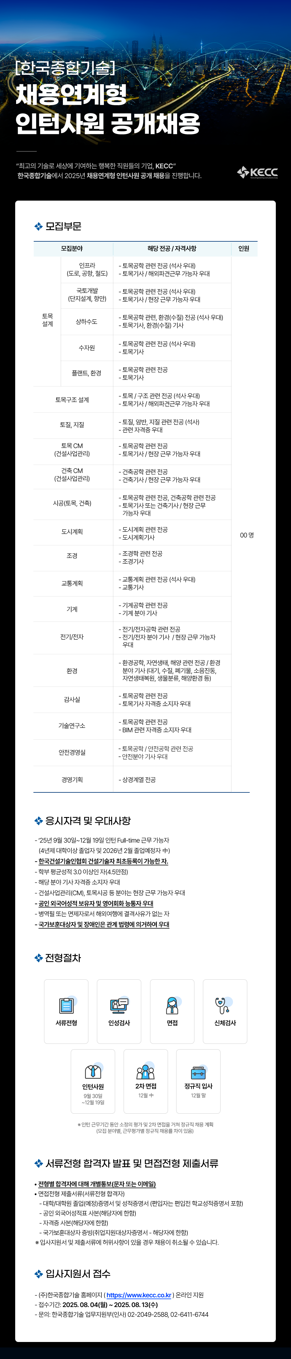 (주)한국종합기술 채용연계형 인턴사원 공개 채용 공고